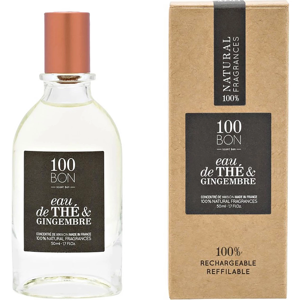 100Bon Eau de The and Gingembre Eau de Parfum is an attractive meeting between Ginger and Tea. A fresh, spicy and lemon scent, reinforced by the vibrant, green and animal scent of Sambac Jasmine. An intense long-lasting fragrance which can be worn by both men and women.