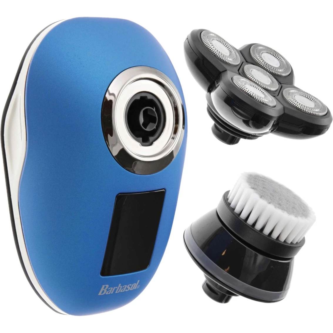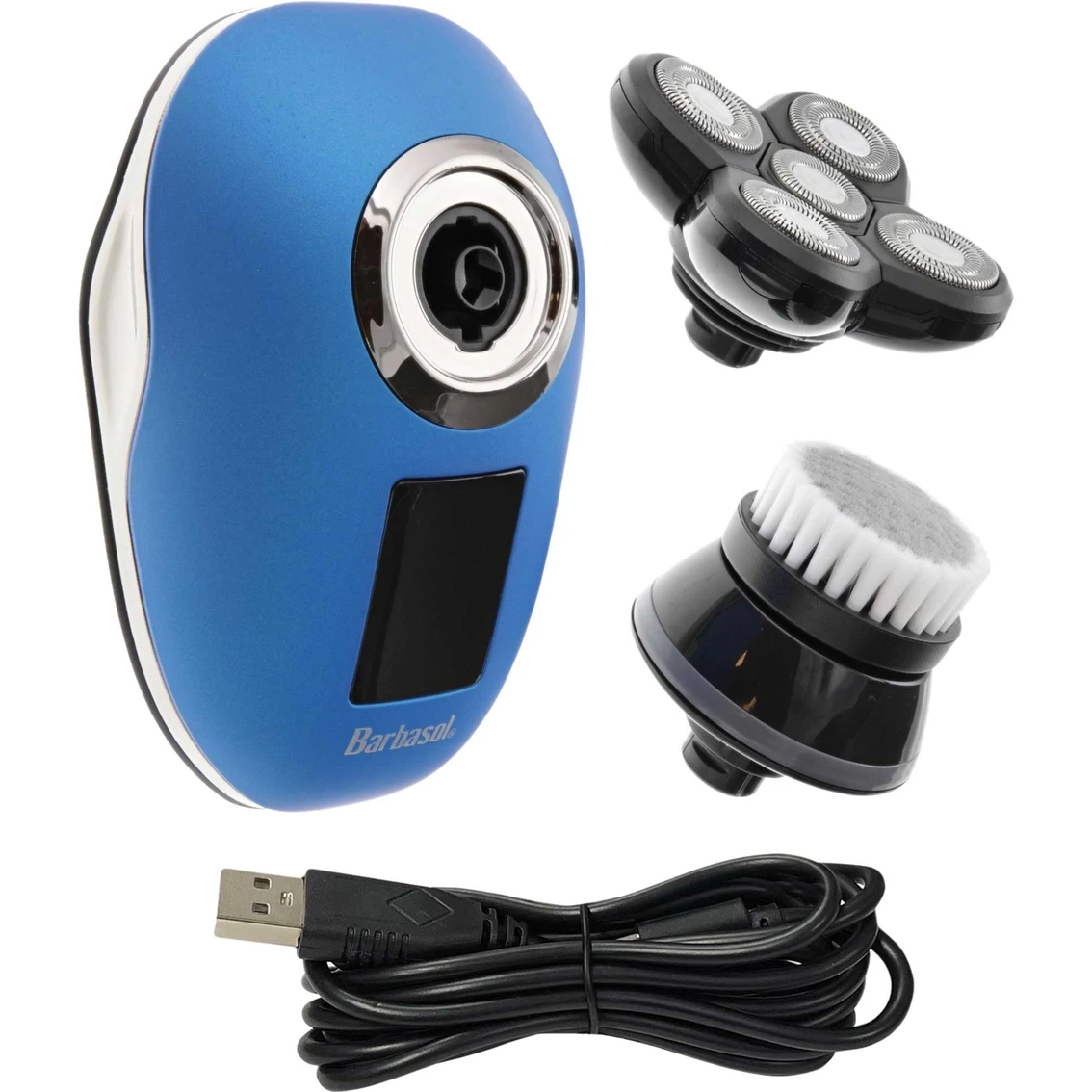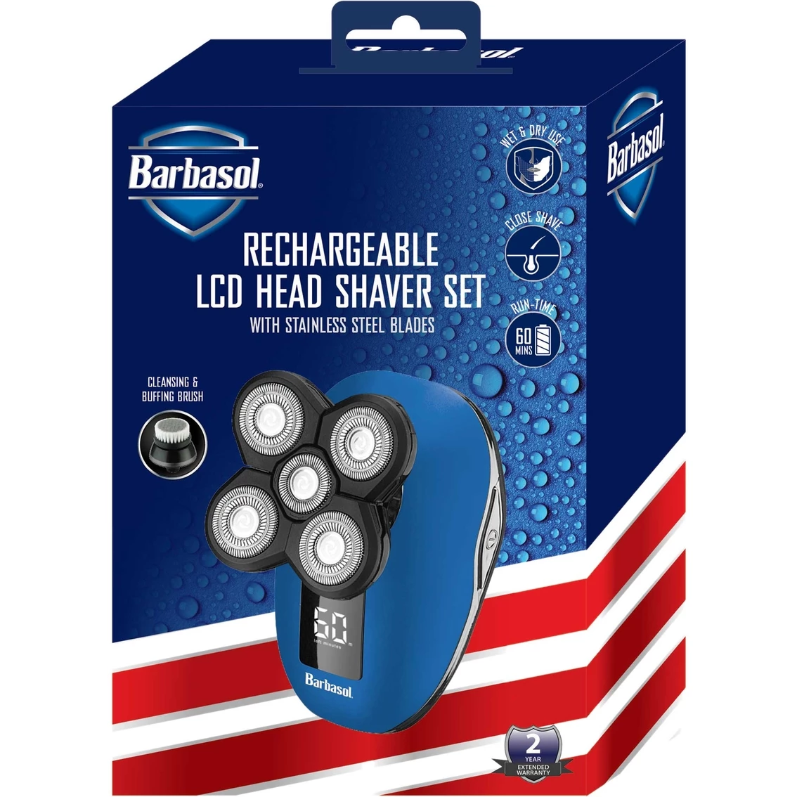 Are you bald, or have a shaved head, and want the smoothest look to your scalp every day? The Barbasol Rechargeable LCD Head Shaver Set is perfect for your needs. With five rotary heads, this is specifically designed for shaving your head, neck, or facial areas with ease. The included Cleaning/Buffing Brush provides a deep cleaning of your skin with the simplest of ease. Suited for both Wet and Dry use, you can go bare or apply your favorite shaving cream. While the Waterproof design allows for it to be used while showering. Youโll be able to charge up the shaver in 90 minutes for 60 minutes of quality shaving time. The built-in LCD Screen features a timer showcasing how much time it has left before you have to recharge it. Have the smoothest shave of your life with the Barbasol Rechargeable LCD Head Shaver Set. Model: CBT1-9000-BLU.