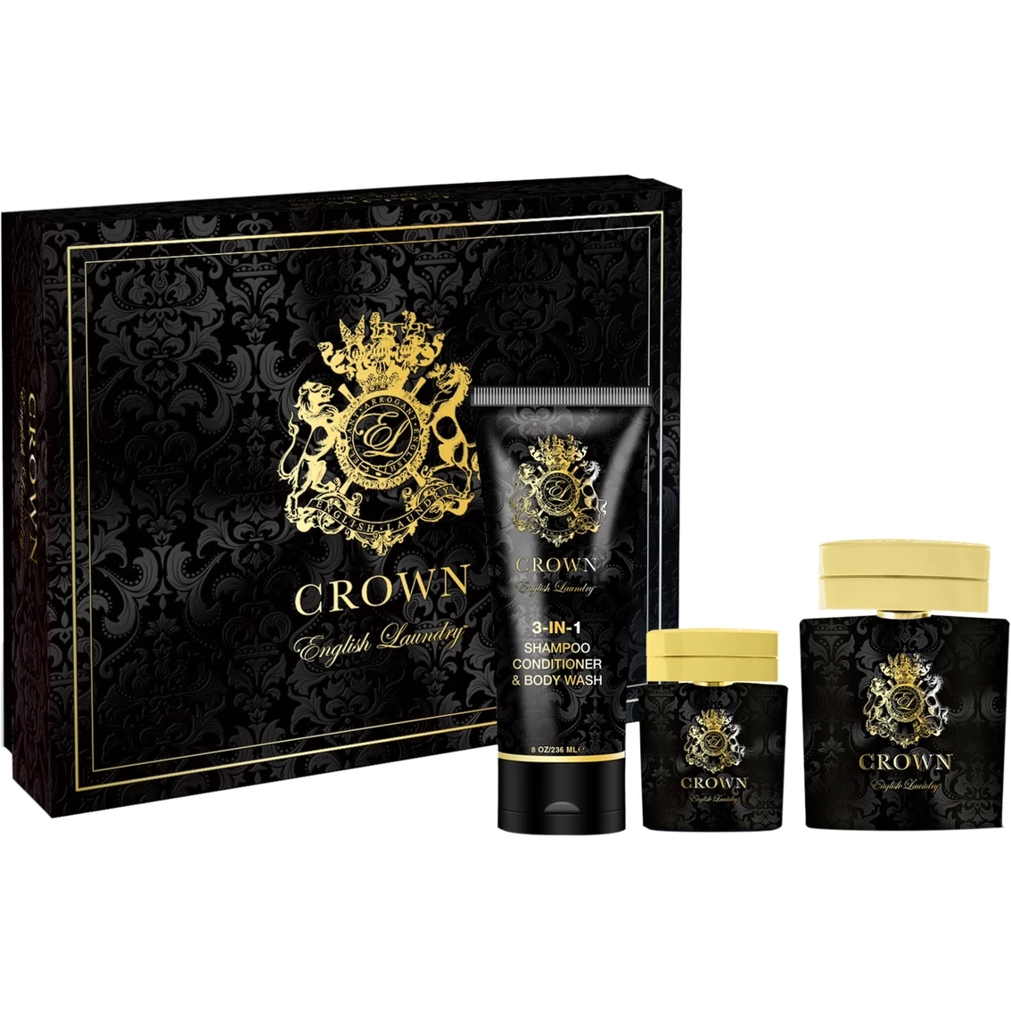Crown is the newest eau de parfum to join the elegant fragrance collection for him from English Laundry by Christopher Wicks. Designed for the refined man, it contains notes of cedar wood, lemon, patchouli, grapefruit, lavender, apple, geranium and rose. This set includes two fragrance sizes and a bottle of 3-in-1 shampoo, conditioner and body wash for ultimate flexibility. Model: ELCR004.