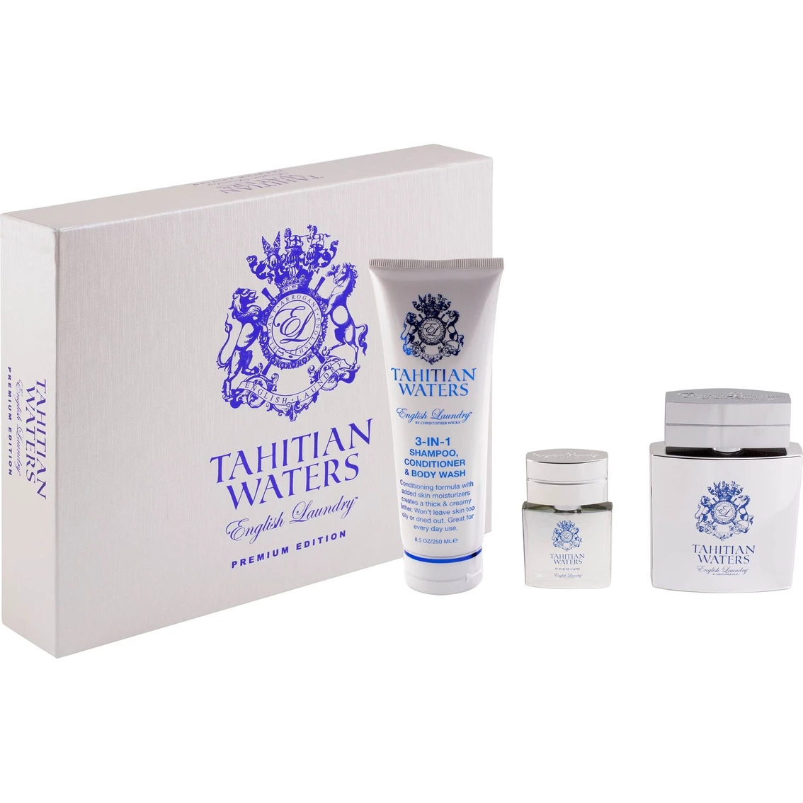 Inspired by the calming breeze and tropical feel of the islands, Tahitian Waters is a refreshing fragrance from English Laundry by Christopher Wicks. Tropical, bright and refreshing, this gift set contains eau de parfum, eau de parfum travel spray and 3-in-1 shampoo/conditioner/body wash. All three of these options give you the chance to wear this scent any way you wish. Model: TW011.