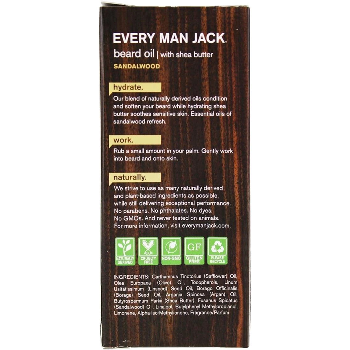 Every Man Jack’s Sandalwood Beard Oil blend of naturally derived oils condition and soften your beard while hydrating and soothing skin. Essential oils of sandalwood refresh and revitalize it as well. Every Man Jack makes high-quality, affordable grooming products just for guys. They strive to use as many naturally derived and plant-based ingredients as possible, while still delivering exceptional performance. No unbelievable promises. No harsh chemicals. No parabens. No phthalates. No dyes. No aluminum. And never tested on animalsβ¦just naturally derived products that get the job done.