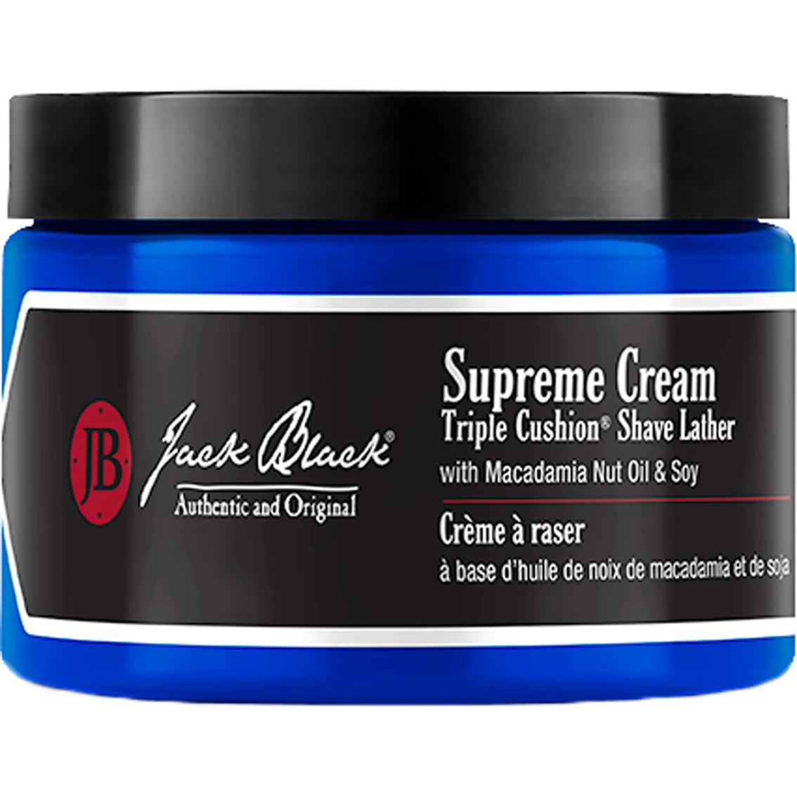 Jack Black Supreme Cream offers the superior shave and skin treatment with a thick, creamy formula. It leaves skin velvety soft, hydrated and refreshed. Triple Cushion technology has three protective layers of macadamia nut oil, glycerin and soybean oil, allowing the razor to glide close to the skin while offering a cushion of protection against razor burn, irritation, nicks and cuts. This cream is perfect for use with or without a shaving brush.