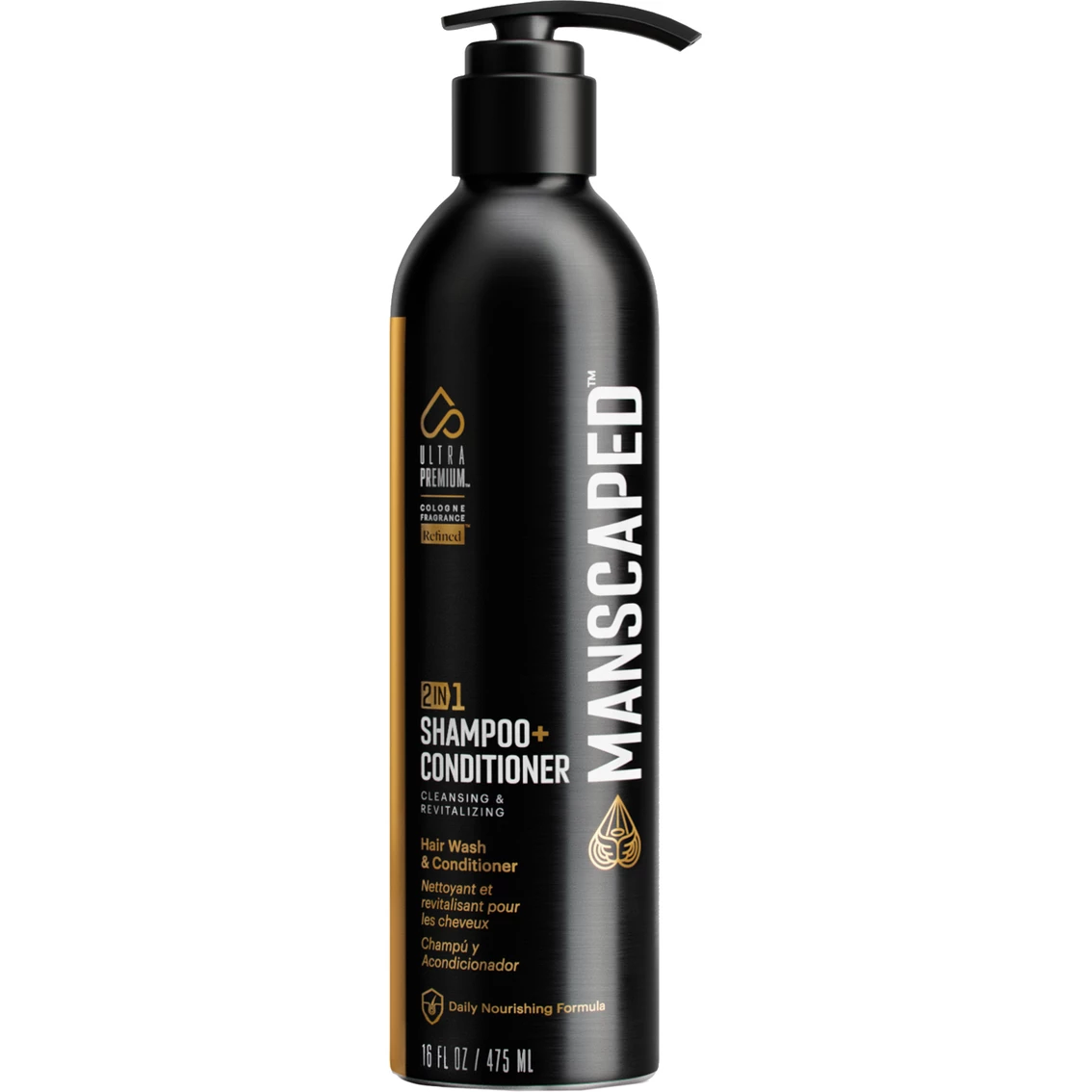 Manscaped Ultra-Premium 2-in-1 Shampoo + Conditioner cleanses and nourishes in just one step. With coconut water, green tea, aloe, turmeric and sage, this non-greasy daily nourishing formula is naturally hydrating and rich in antioxidants to revitalize the look and feel of your hair. Style: SC16.