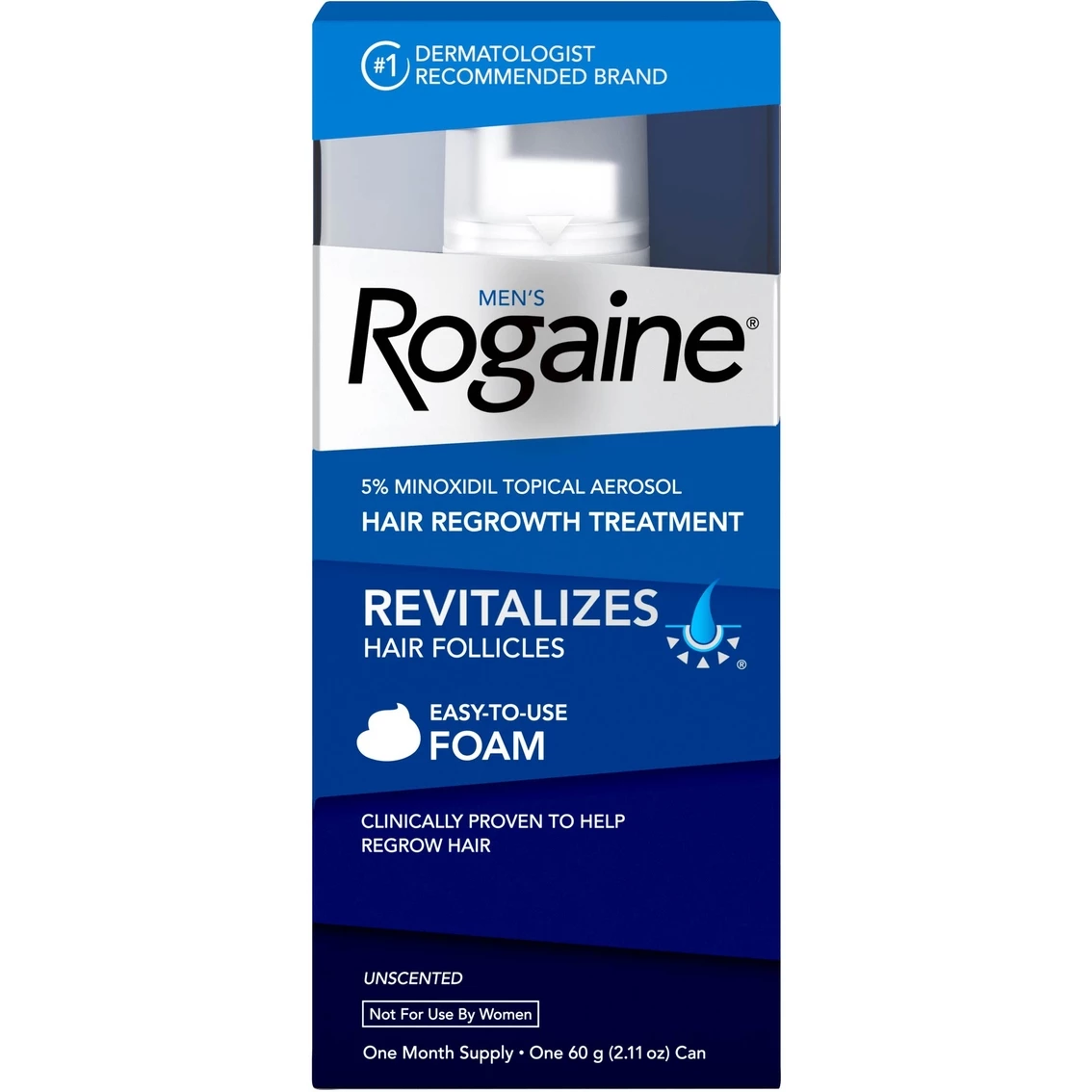Help treat hair loss and regrow fuller hair with Men’s Rogaine 5% Minoxidil Topical Foam. Ideal for use at the early stages of hair thinning, this hair regrowth treatment is clinically proven to regrow up to 25% more hair in 12 weeks. Unlike hair loss shampoos and hair thickening products that temporarily plump hair from the outside, Rogaine penetrates the scalp to reactivate shrunken hair follicles, allowing for regrowth of hair. The 5% Minoxidil formula works to boost hair follicle activity and hair protein production, while Tricho-Prime Technology uses a proprietary combination of ingredients to create an optimal environment for hair regrowth. It comes in a no-mess foam that is easy to use and is designed to fit easily into your routine. Based on hair count among men and women in clinical studies performed for FDA approval, Jan 2006.