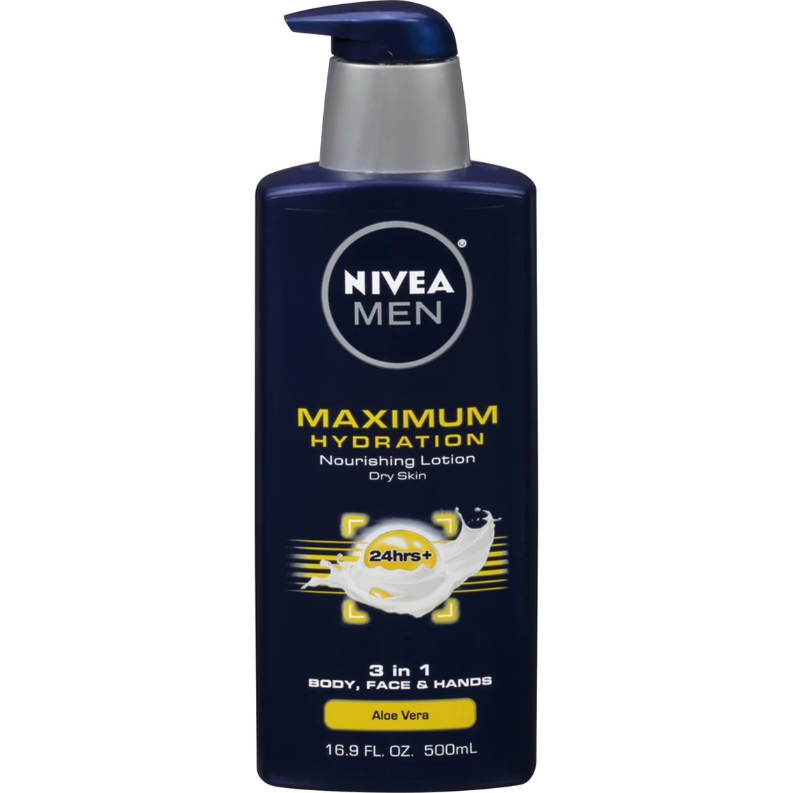 Nivea’s exclusive Hydra IQ technology supports skins own hydration network to unleash deep, non-stop moisture that lasts more than 24 hours. Nivea Men Maximum Hydration Body Lotion boosts the moisture level in the skin and intensively moisturizes. Specially formulated for men with dry skin, this lotion with Hydra-IQ technology absorbs in seconds with no greasy after feel.