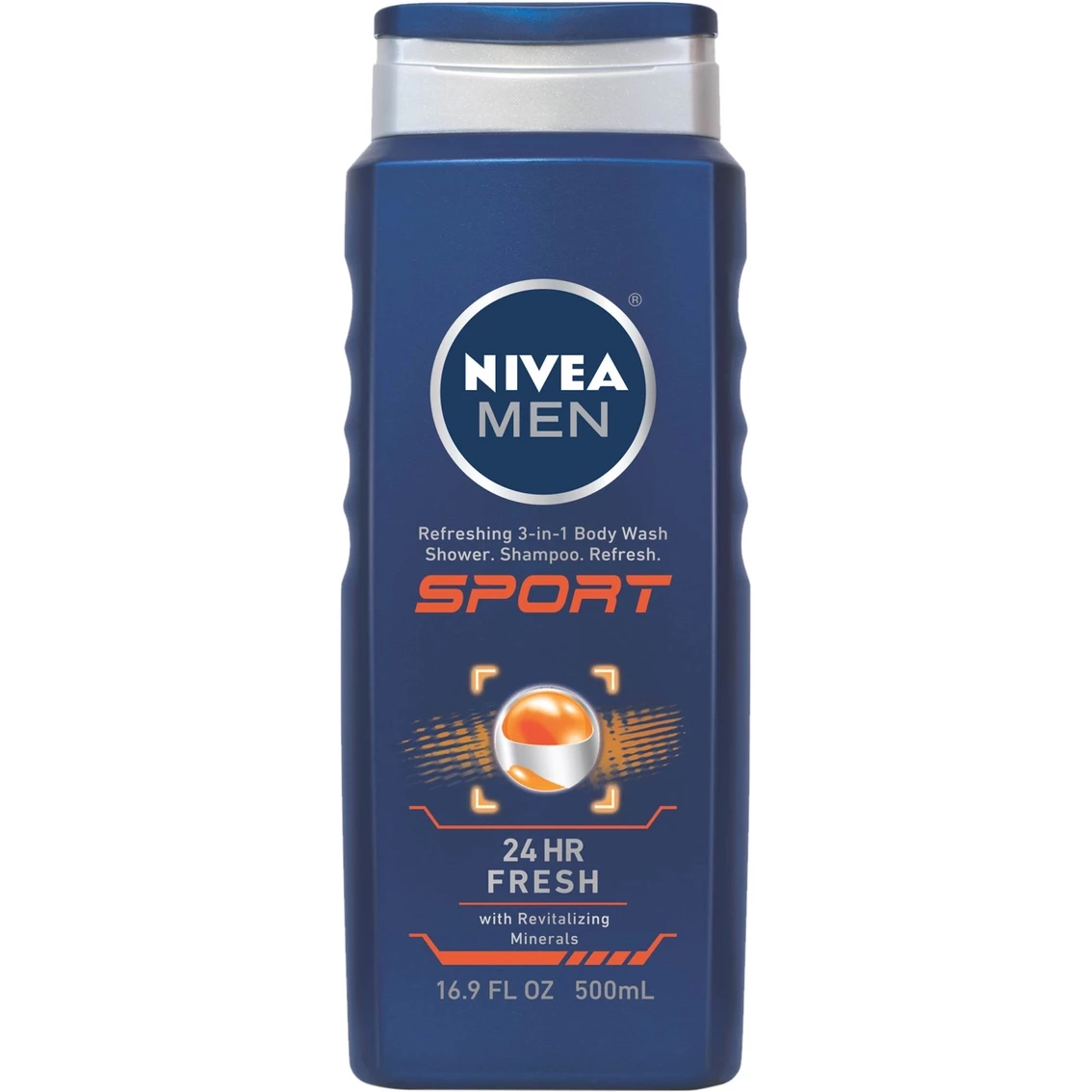 Nivea Men Sport 3-in-1 Body Wash is for men who want a refreshing shower experience and the 3-in-1 benefit of a shower, shampoo and refresh, all in one. This formula provides 24-hour freshness with revitalizing minerals.