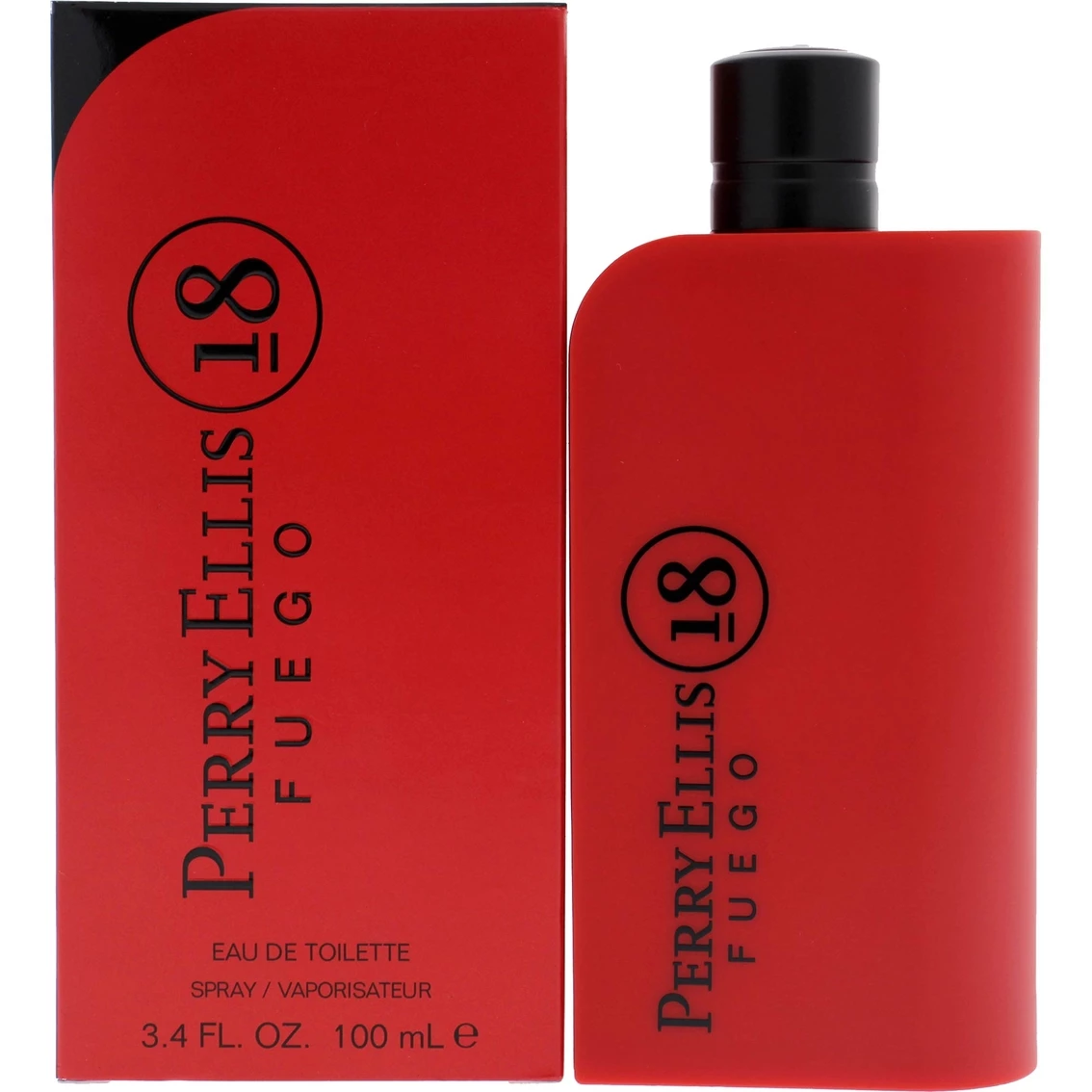The 18 Fuego fragrance for men was launched by the design house of Perry Ellis in the year 2011. This floral fruity fragrance has a blend of bergamot, grapefruit, apple, green notes, cardamom, aquatic, sandalwood, white moss, blue amber and Musk. 3.4 oz.