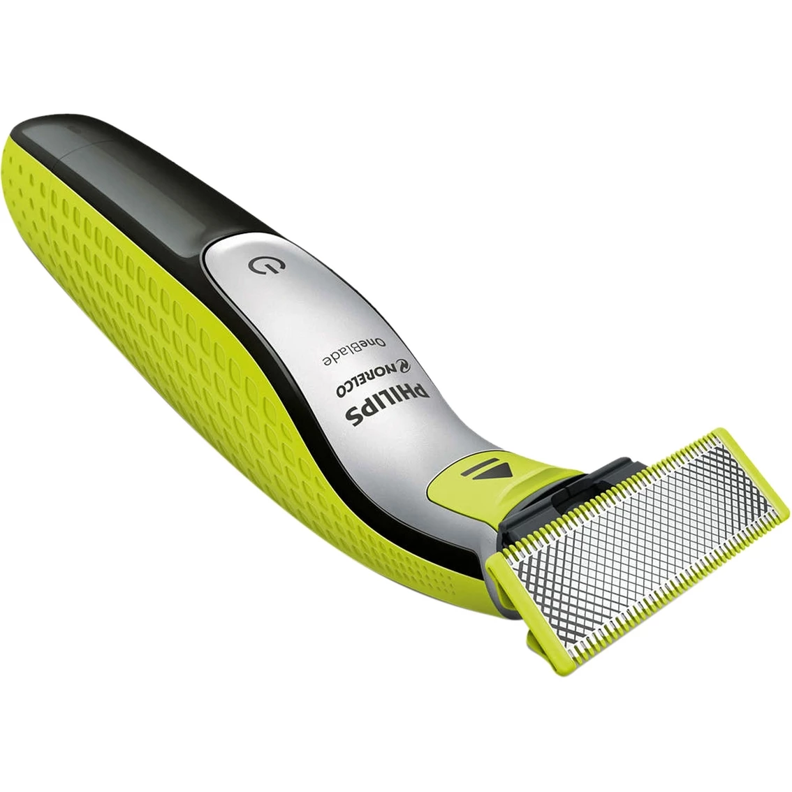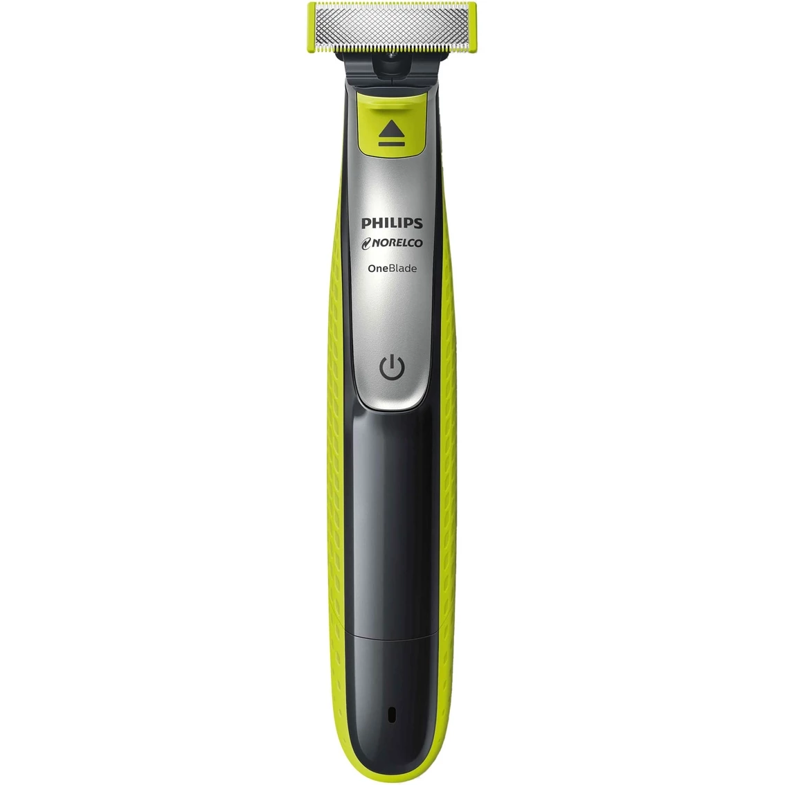 The Philips Norelco OneBlade Face + Body Hybrid Electric Trimmer and Shaver features a revolutionary new technology designed for facial styling and body grooming. It can trim, edge and shave any length of hair. Its dual protection system – a glide coating combined with rounded tips – makes shaving easier and comfortable. Its shaving technology features a fast-moving cutter (200x per second) so it’s efficient – even on longer hairs. Model: QP2630/70.