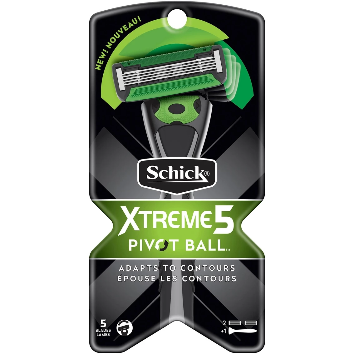 The Schick Xtreme5 Pivot Ball Men’s Razor System features a revolutionary multi-axis pivot handle that moves up and down and side to side, responding perfectly to contours. The 5-blade razor system will give a superior shave. The package includes one heavy, die-cast razor handle with rubber and two cartridge refills.