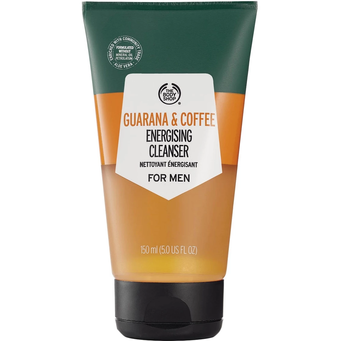 The Body Shop Guarana and Coffee Energizing Cleanser for Men provides a feeling of freshness and cleanliness, leaving skin feeling energized for the ultimate beginning or end to a day. Enriched with Brazilian Guarana and Ethiopian green coffee and organic Community Trade aloe vera, this vibrant orange gel foams into a light foamy lather, which leaves skin feeling invigorated.