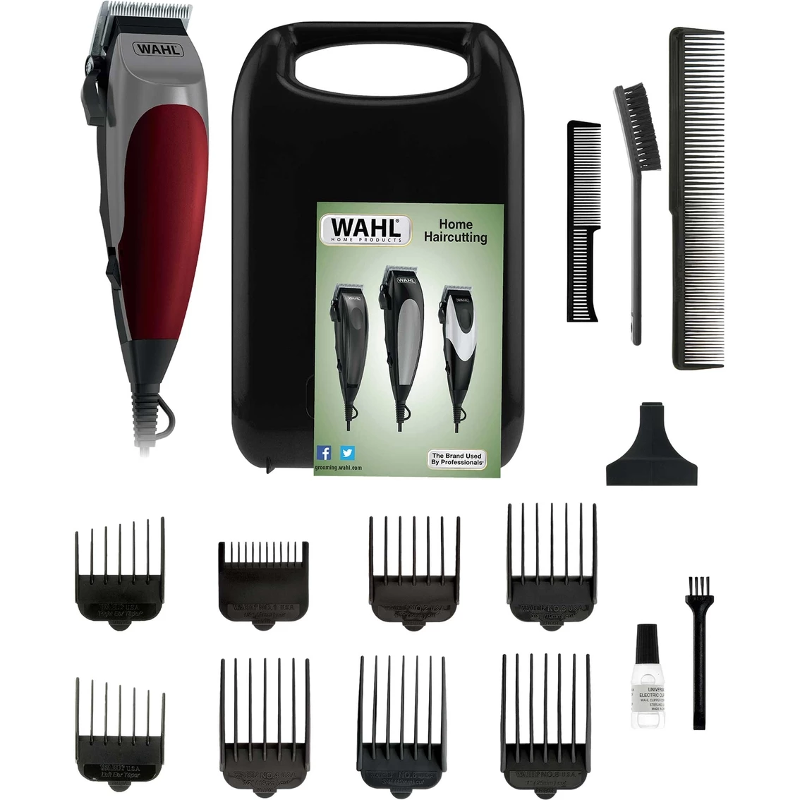 The Wahl Fade Cut is a 16-piece complete multi-cultural haircutting kit that is ideal for fades, outlining and high and tight hairstyles. Adjustable fade lever for blending and fading. Kit Includes a clipper with blade guard, a durable storage case, 8 guide combs, a styling comb, a beard brush, a mustache comb, blade oil, a cleaning brush and English and Spanish instructions styling guide. It has a 5-year warranty. Model: 9656.