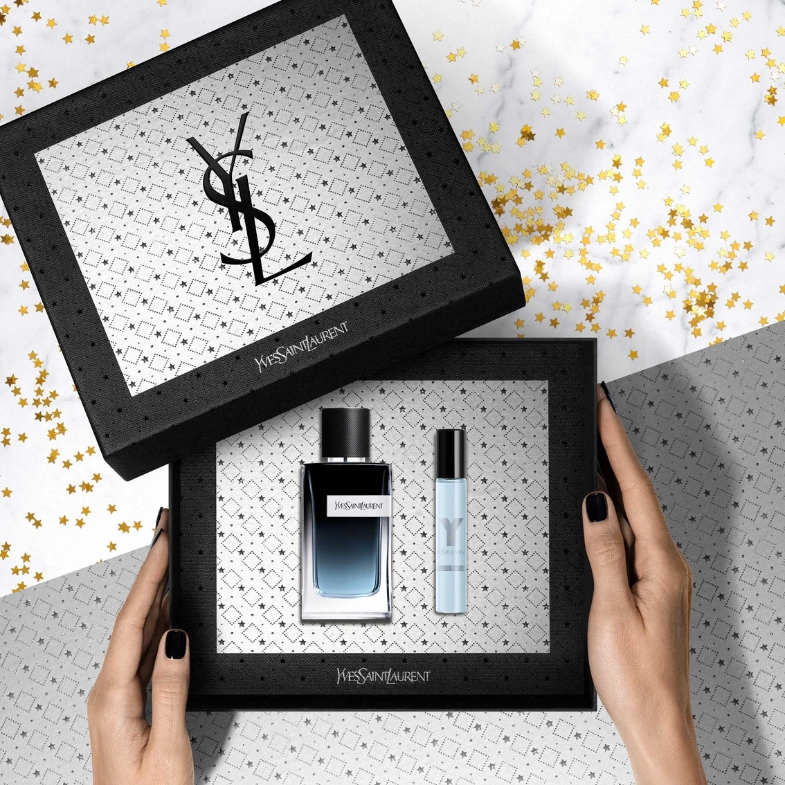 The signature Yves Saint Laurent Y cologne is a bold and woody men’s fragrance. It is infused with sophisticated and revitalizing notes of sage and geranium and rounded out with a hint of sensual wood. The set includes a 3.3-oz. eau de parfum spray and a 0.34-oz. eau de parfum travel spray.